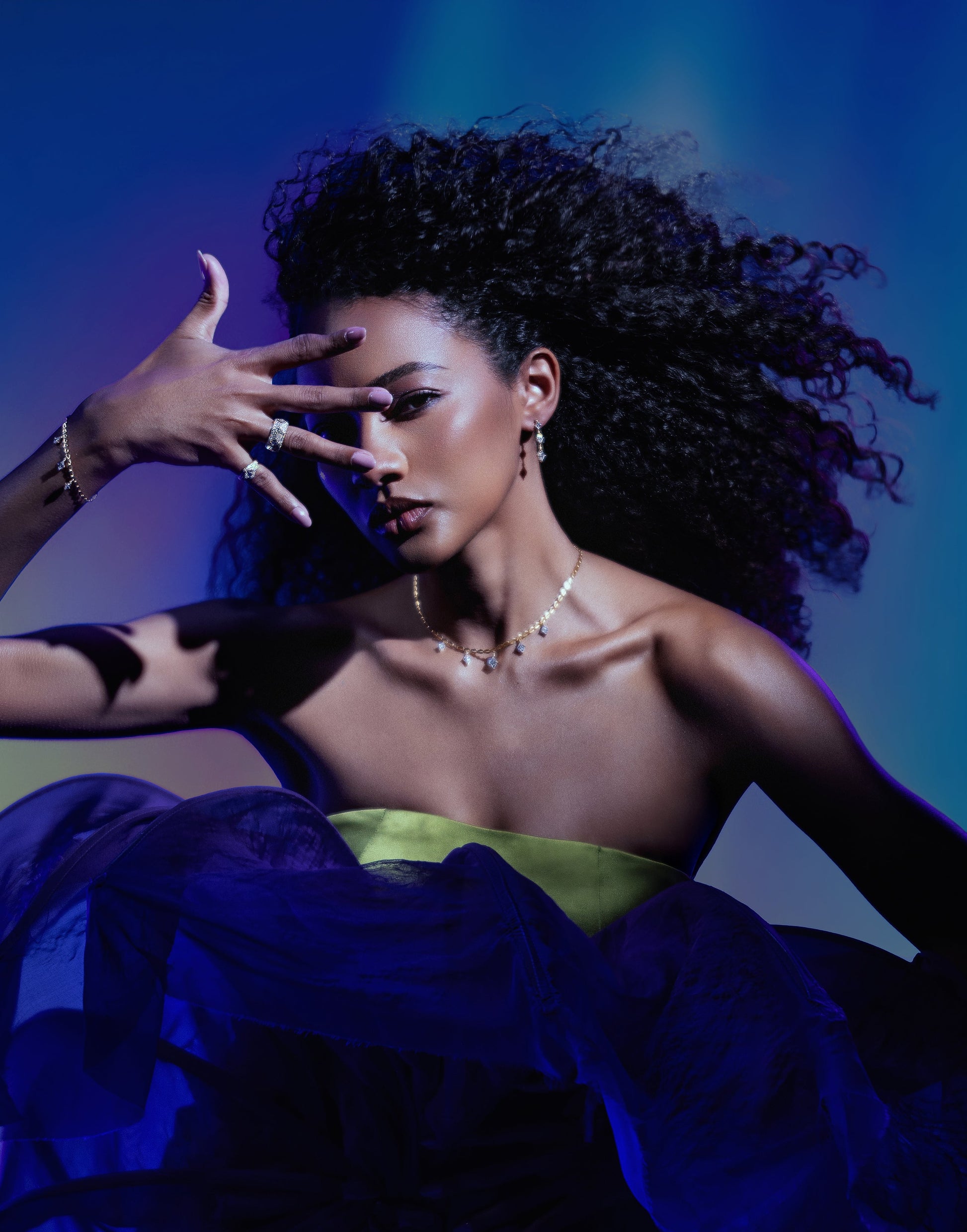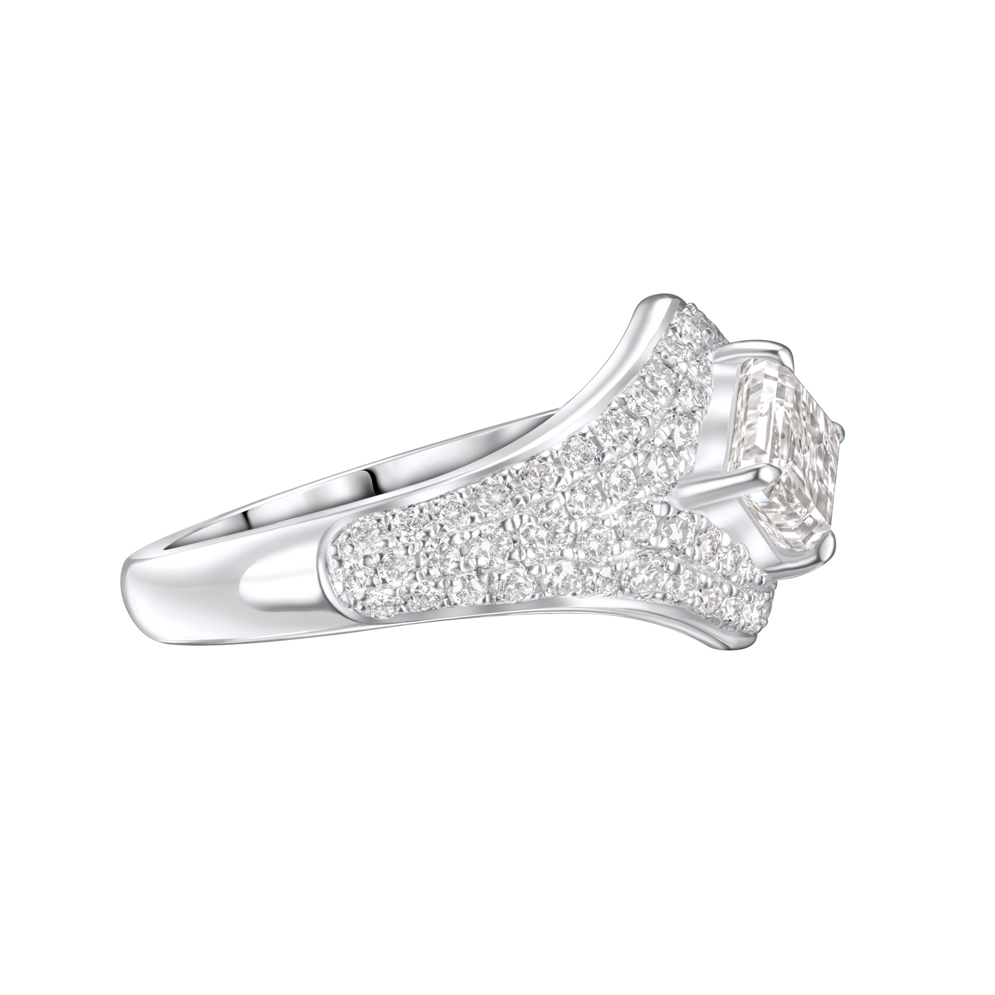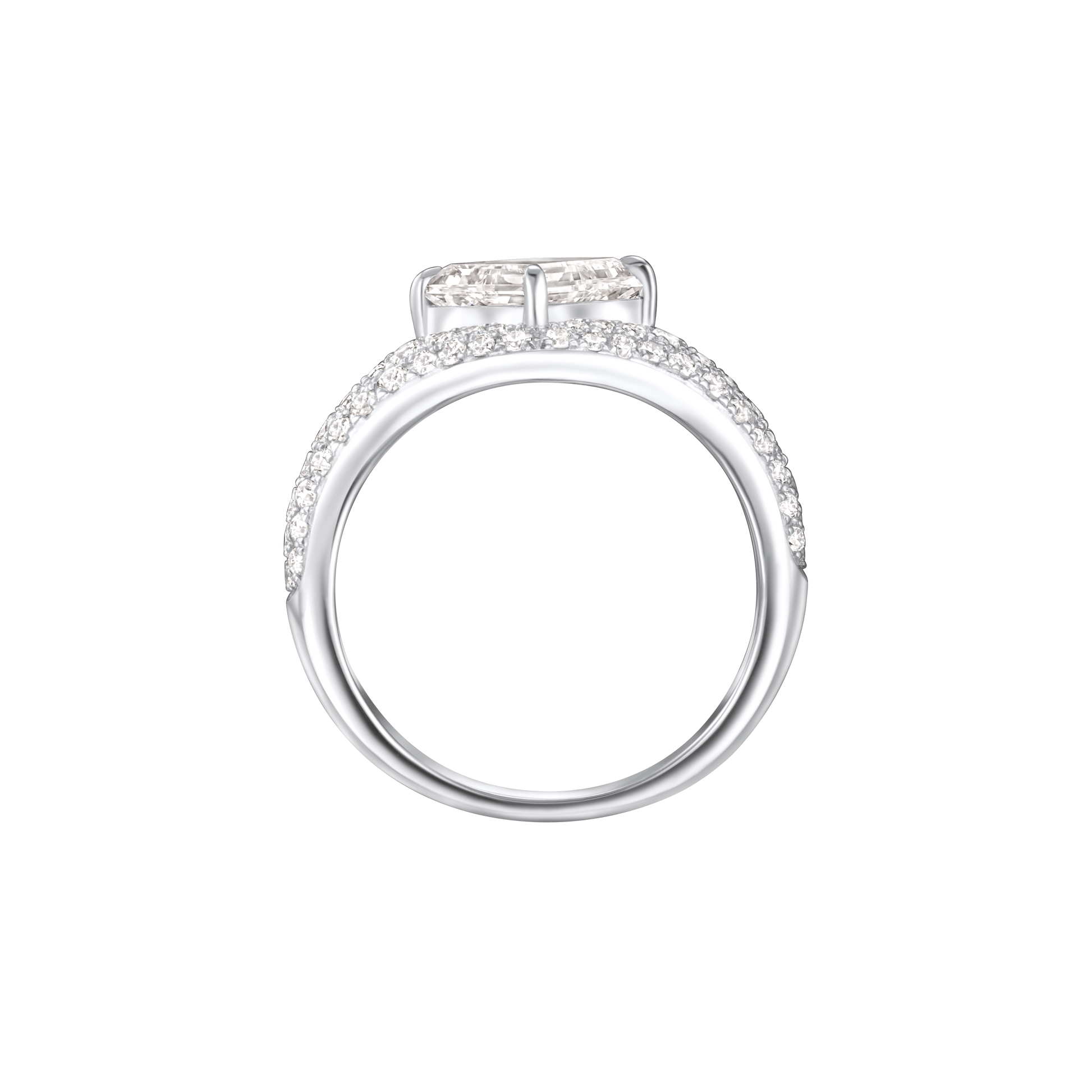A cosmic statement in 18K gold, this bold pinky ring features a total of 1.71 carats of diamonds. At its heart lies a striking lozenge-cut diamond, framed by a constellation of pavé-set stones that ripple across the surface like waves of light, evoking the rhythm of celestial motion.